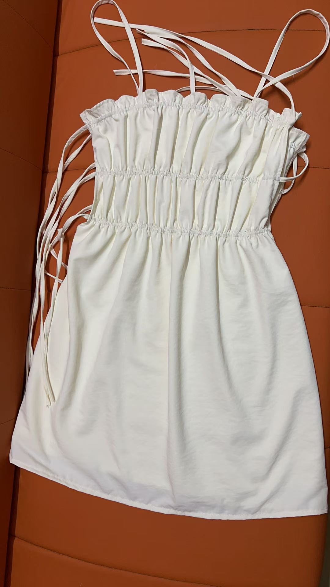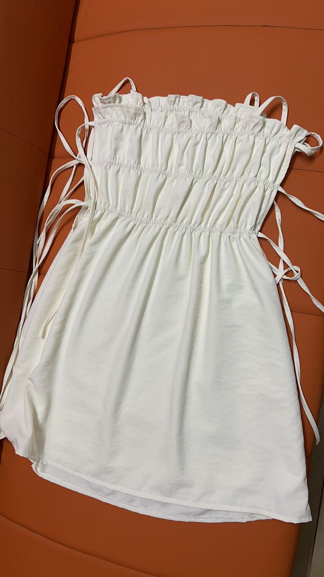 Product information: Pattern: solid color Skirt type: suspender skirt Color: Milky White Size: S,M,L,XL,XXL Popular elements: lace-up Style: Sling style Fabric name: Polyester Skirt Category: Dress