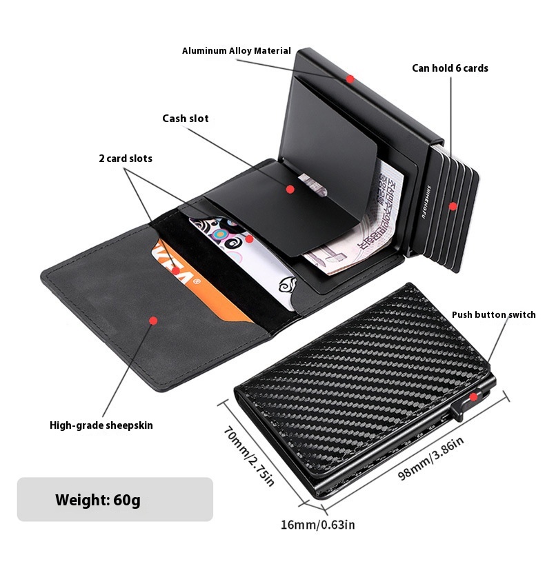 Product information: Color: Black, Brown, carbon fiber black, brown, gray Function: anti-theft card swiping Material: pu Style: European and American Retro