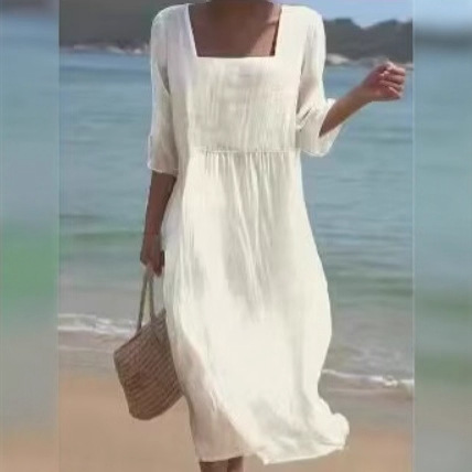 Product information: Color: 121-qfpxqz Waist type: wide waist Size: S,M,L,XL,2XL,3XL Skirt length: mid-length skirt Style: pullover Fabric name: Polyester Main fabric composition: Polyester (polyester fiber) Sleeve length: short sleeve Skirt Category: Dress Process: Printing